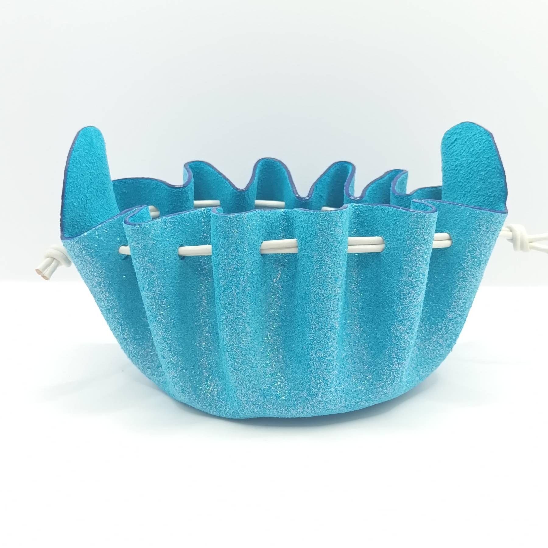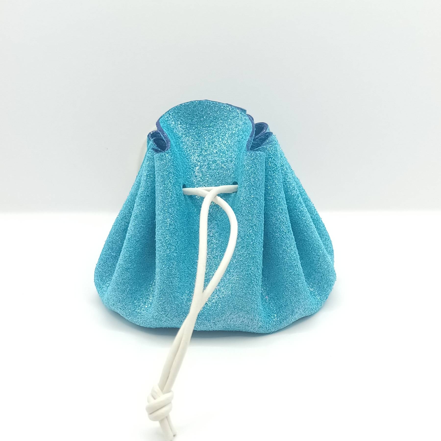 Cette bourse est entièrement réalisée à la main et fabriquée à partir de chutes de cuir d'agneau et le cordon est en cuir de vachette. Elle mesure 8 cm de diamètre et 8 cm de hauteur. Elle s’ouvre simplement en tirant sur les «oreilles» et se ferme en tirant sur les liens. Vous pouvez aussi fermer la bourse en faisant un nœud avec les liens par dessus les «oreilles» pour plus de sécurité. *La couleur réelle peut légèrement varier selon la luminosité et le contraste de votre écran
