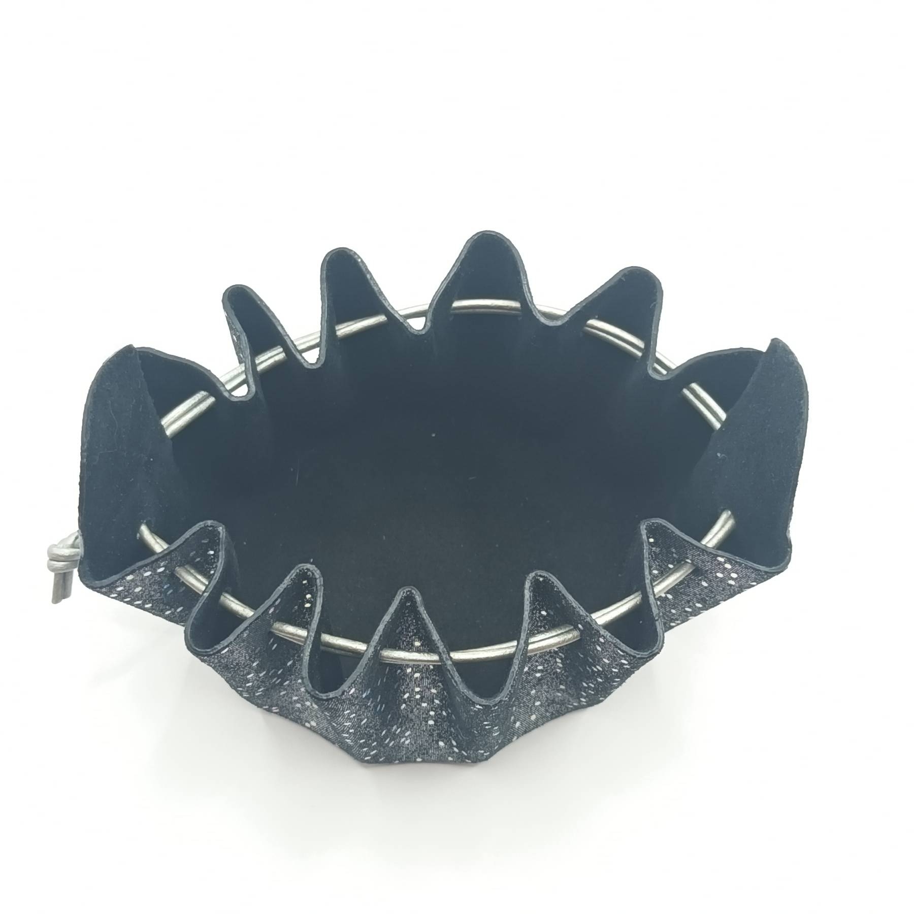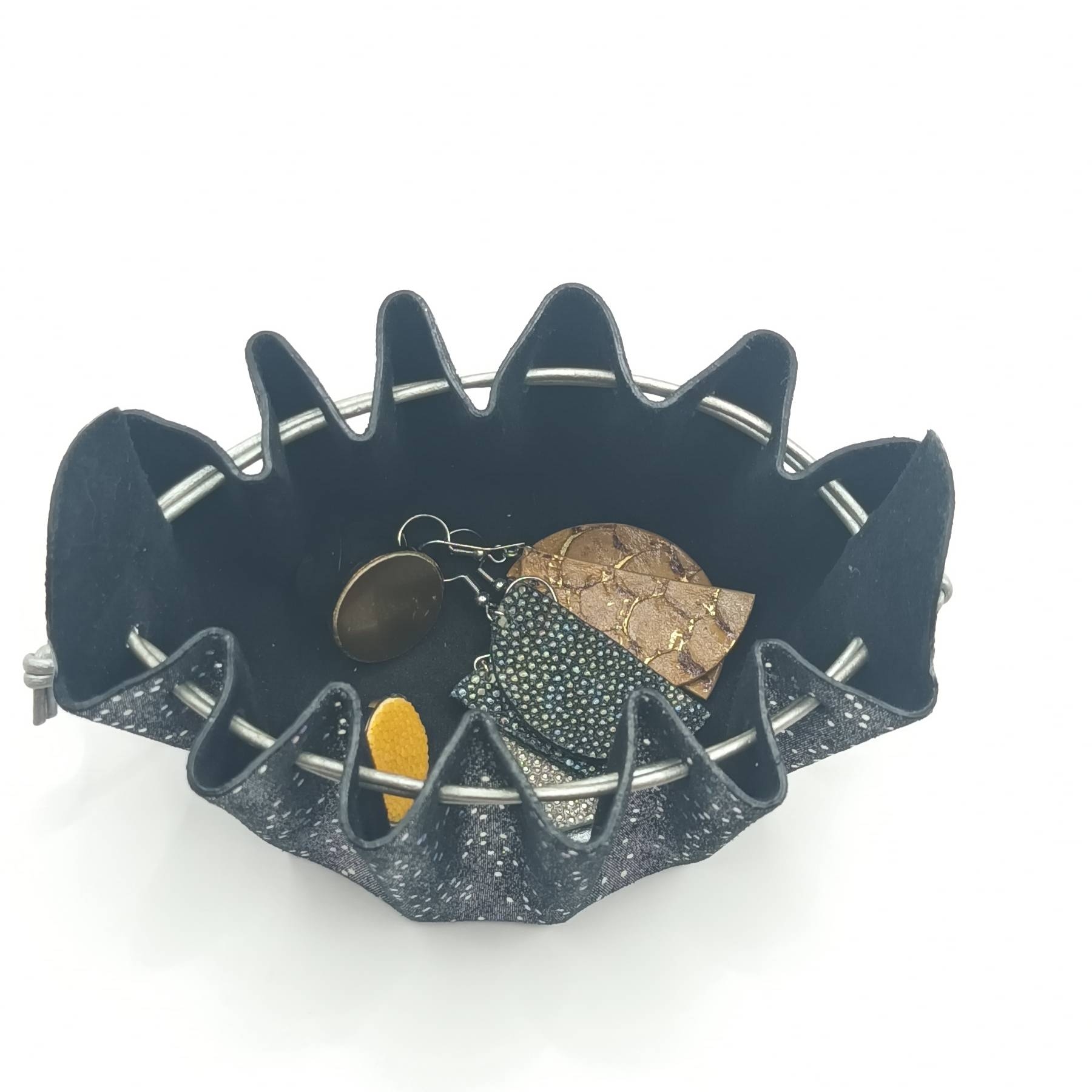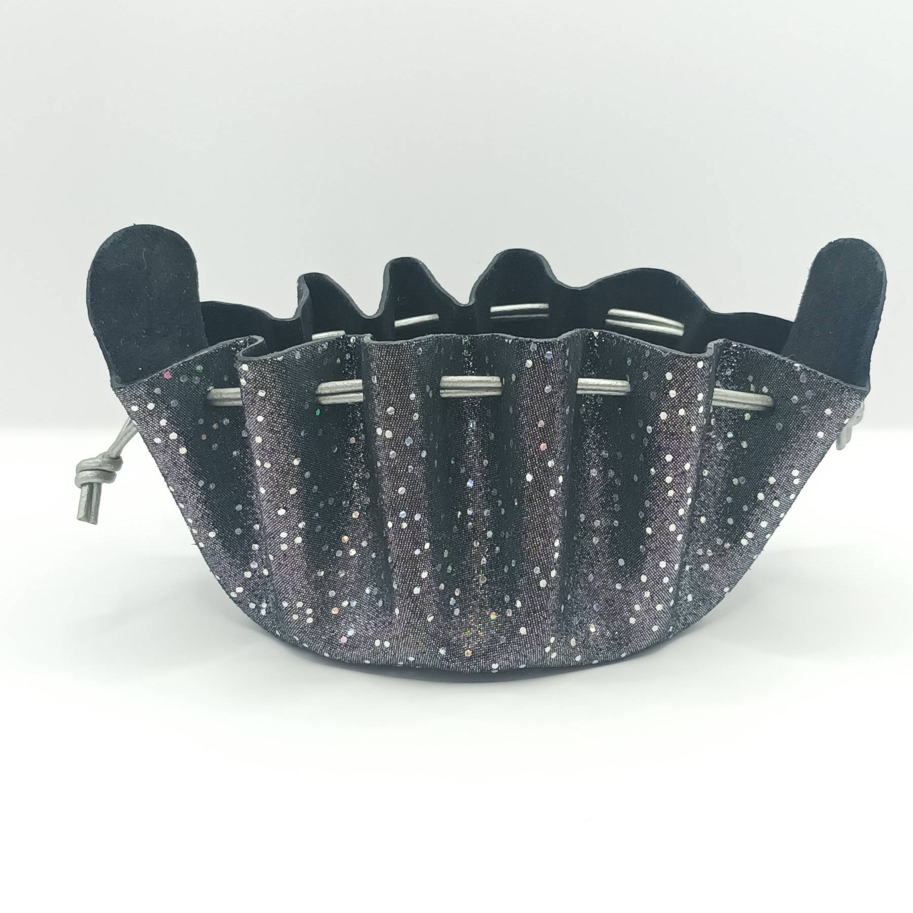 Cette bourse est entièrement réalisée à la main et fabriquée à partir de chutes de cuir d'agneau et le cordon est en cuir de vachette. Elle mesure 8 cm de diamètre et 8 cm de hauteur. Elle s’ouvre simplement en tirant sur les «oreilles» et se ferme en tirant sur les liens. Vous pouvez aussi fermer la bourse en faisant un nœud avec les liens par dessus les «oreilles» pour plus de sécurité. *La couleur réelle peut légèrement varier selon la luminosité et le contraste de votre écran