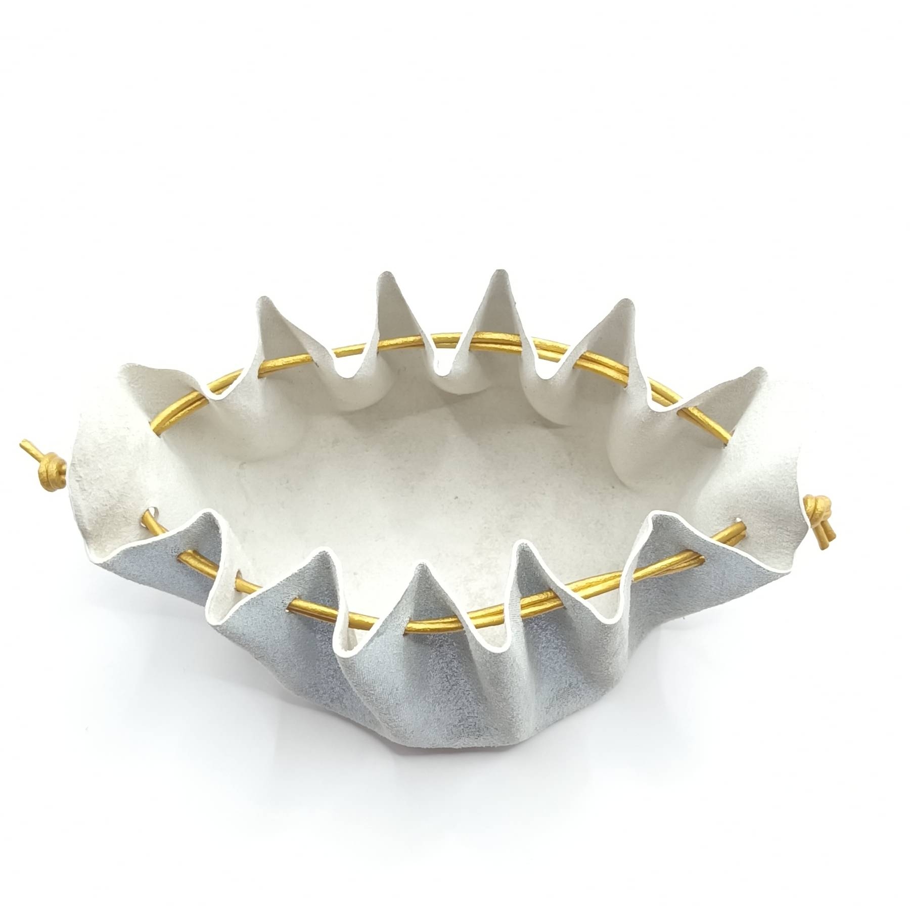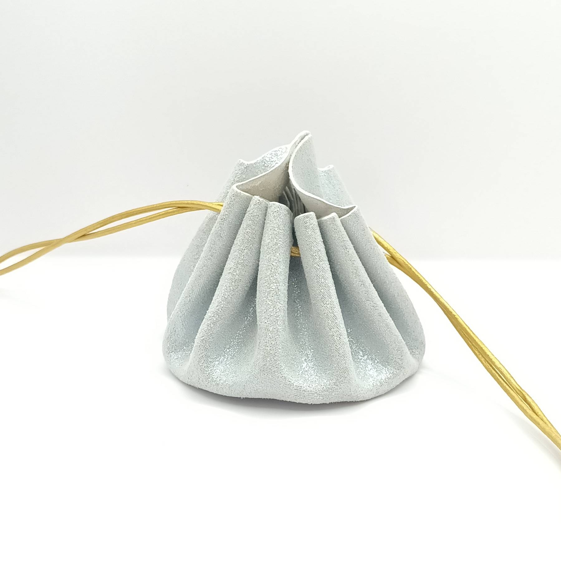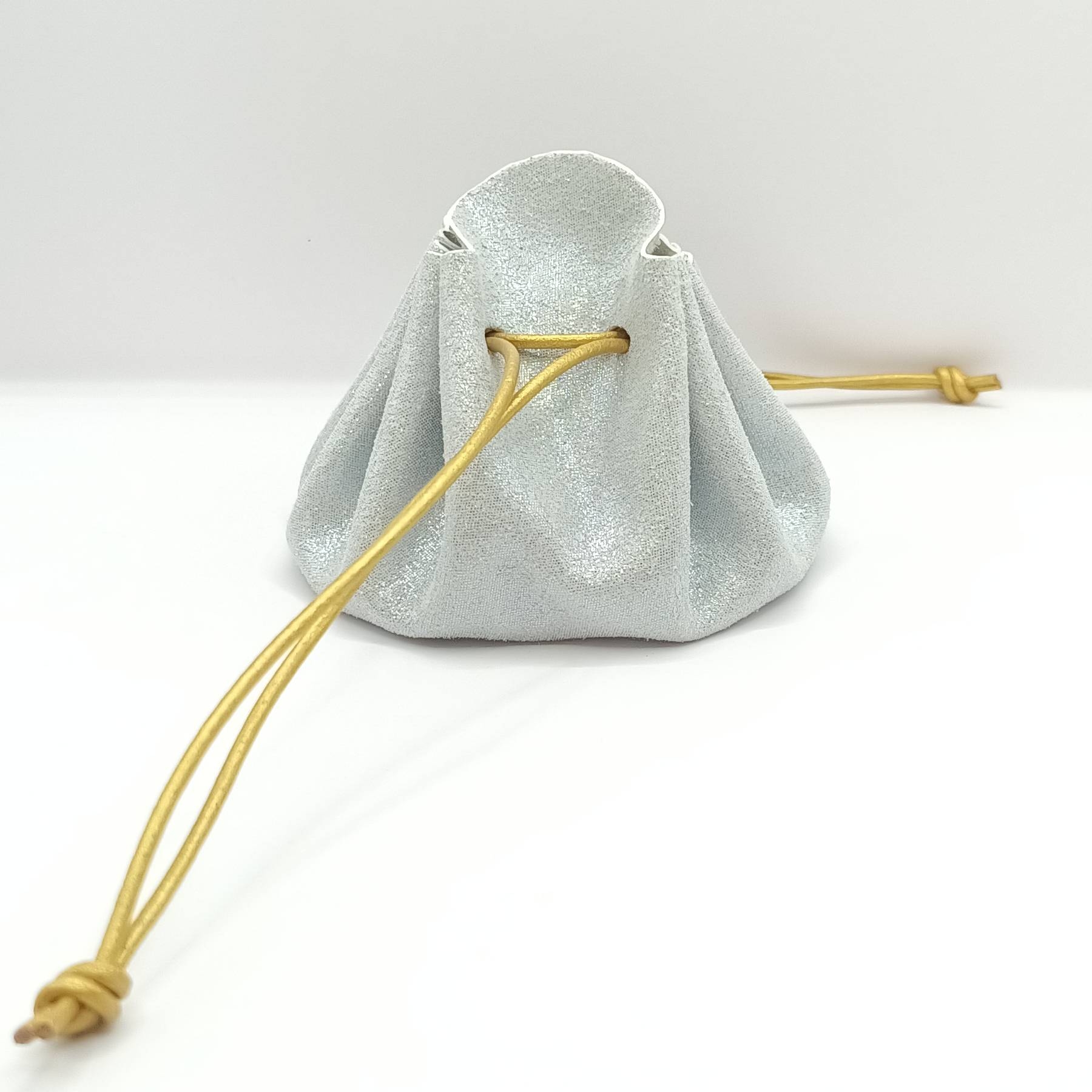 Cette bourse est entièrement réalisée à la main et fabriquée à partir de chutes de cuir d'agneau et le cordon est en cuir de vachette. Elle mesure 8 cm de diamètre et 8 cm de hauteur. Elle s’ouvre simplement en tirant sur les «oreilles» et se ferme en tirant sur les liens. Vous pouvez aussi fermer la bourse en faisant un nœud avec les liens par dessus les «oreilles» pour plus de sécurité. *La couleur réelle peut légèrement varier selon la luminosité et le contraste de votre écran
