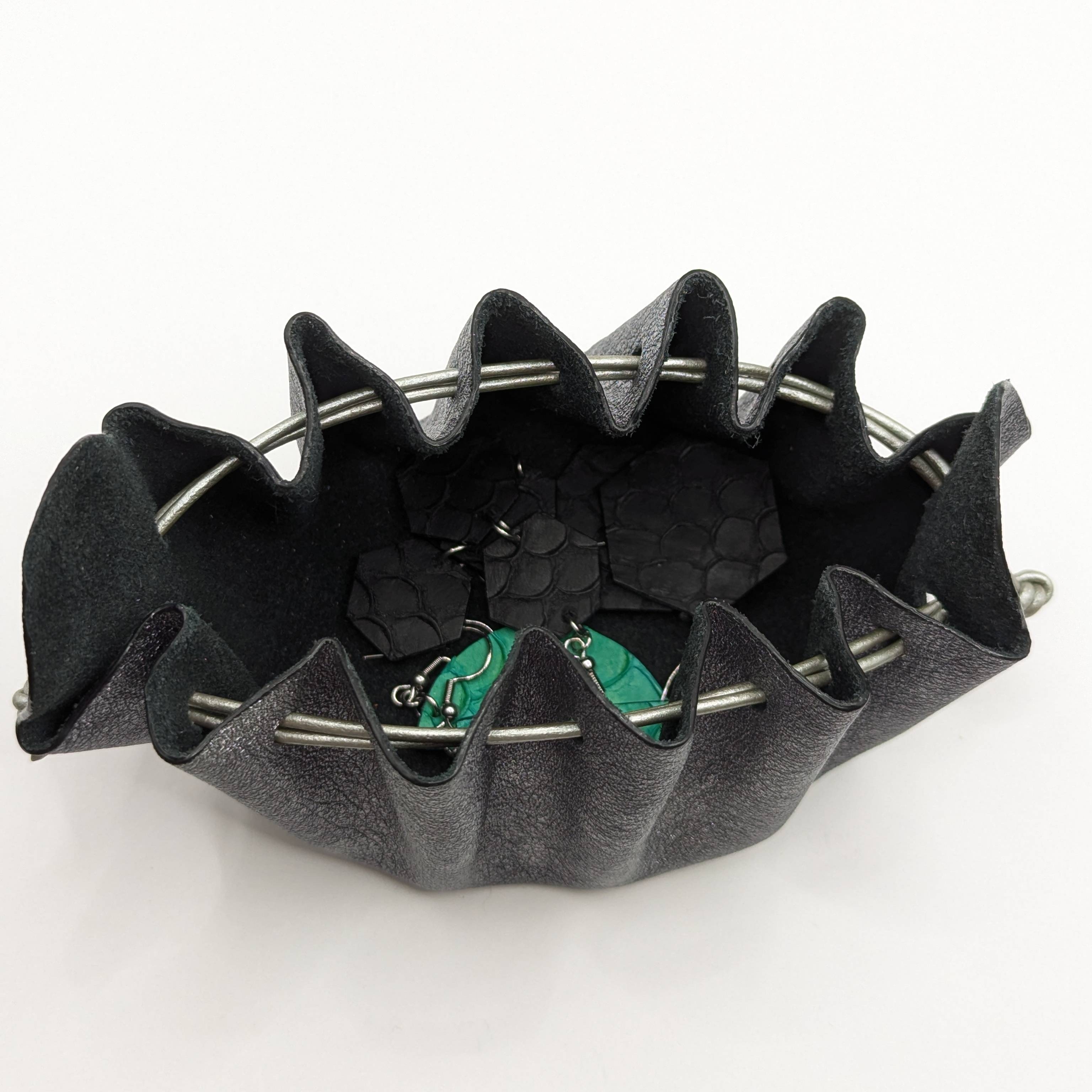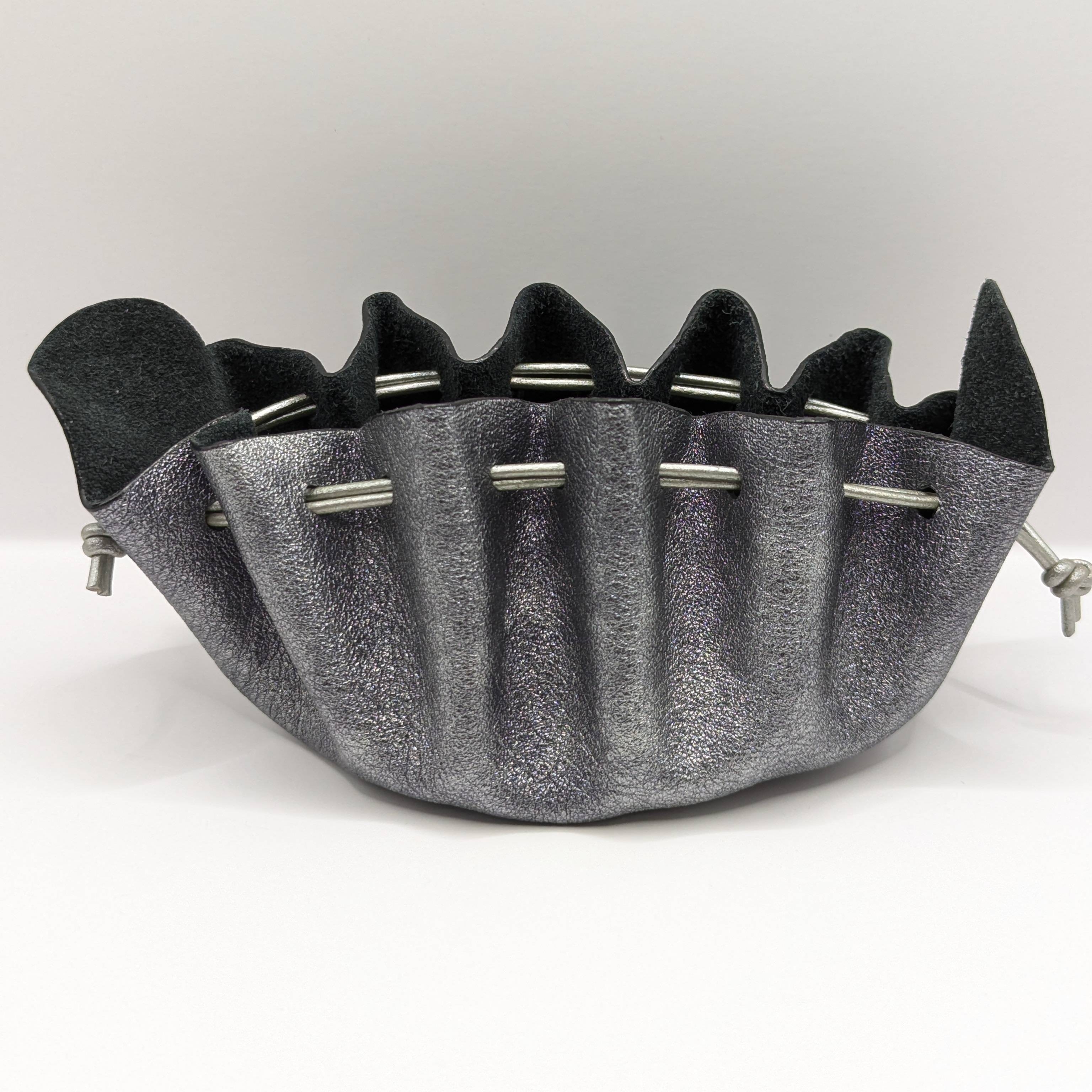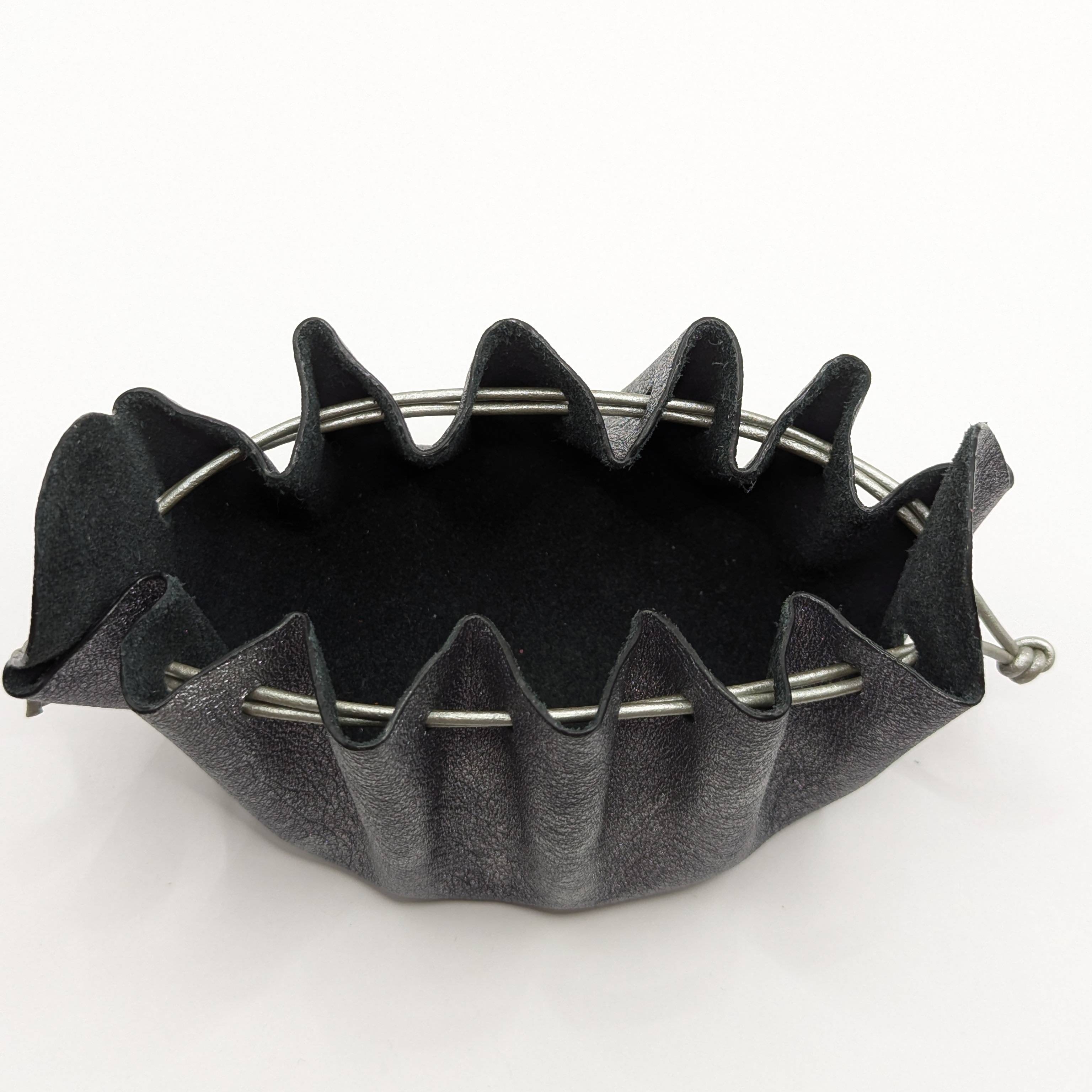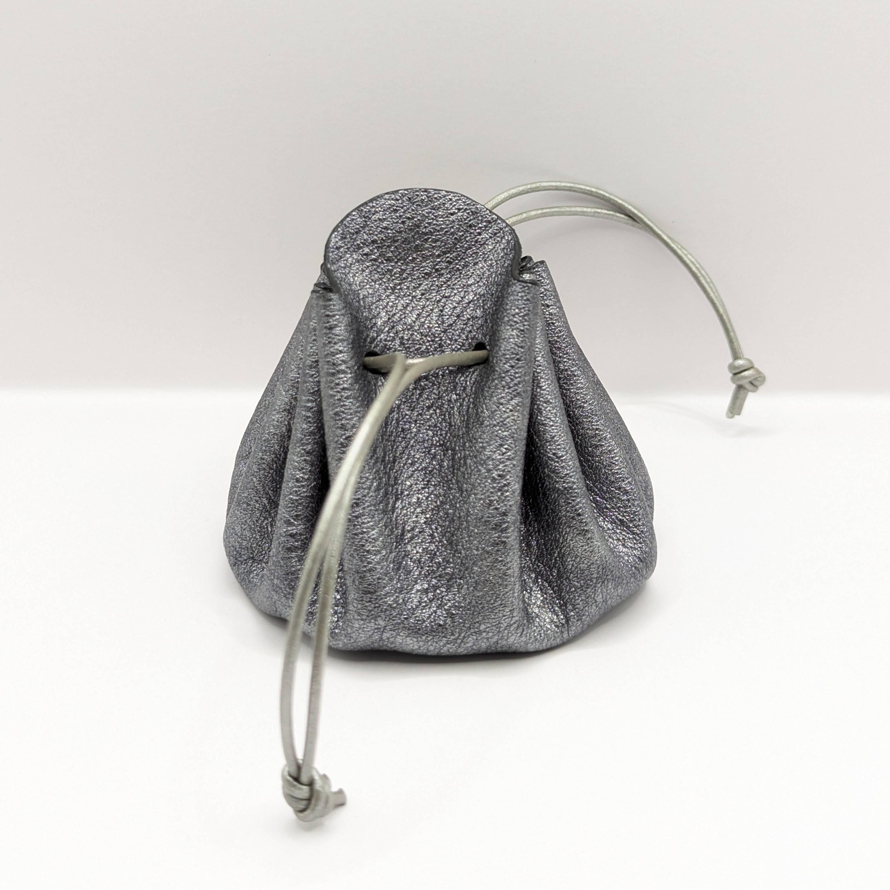 Cette bourse est entièrement réalisée à la main et fabriquée à partir de chutes de cuir d'agneau et le cordon est en cuir de vachette. Elle mesure 8 cm de diamètre et 8 cm de hauteur. Elle s’ouvre simplement en tirant sur les «oreilles» et se ferme en tirant sur les liens. Vous pouvez aussi fermer la bourse en faisant un nœud avec les liens par dessus les «oreilles» pour plus de sécurité. *La couleur réelle peut légèrement varier selon la luminosité et le contraste de votre écran