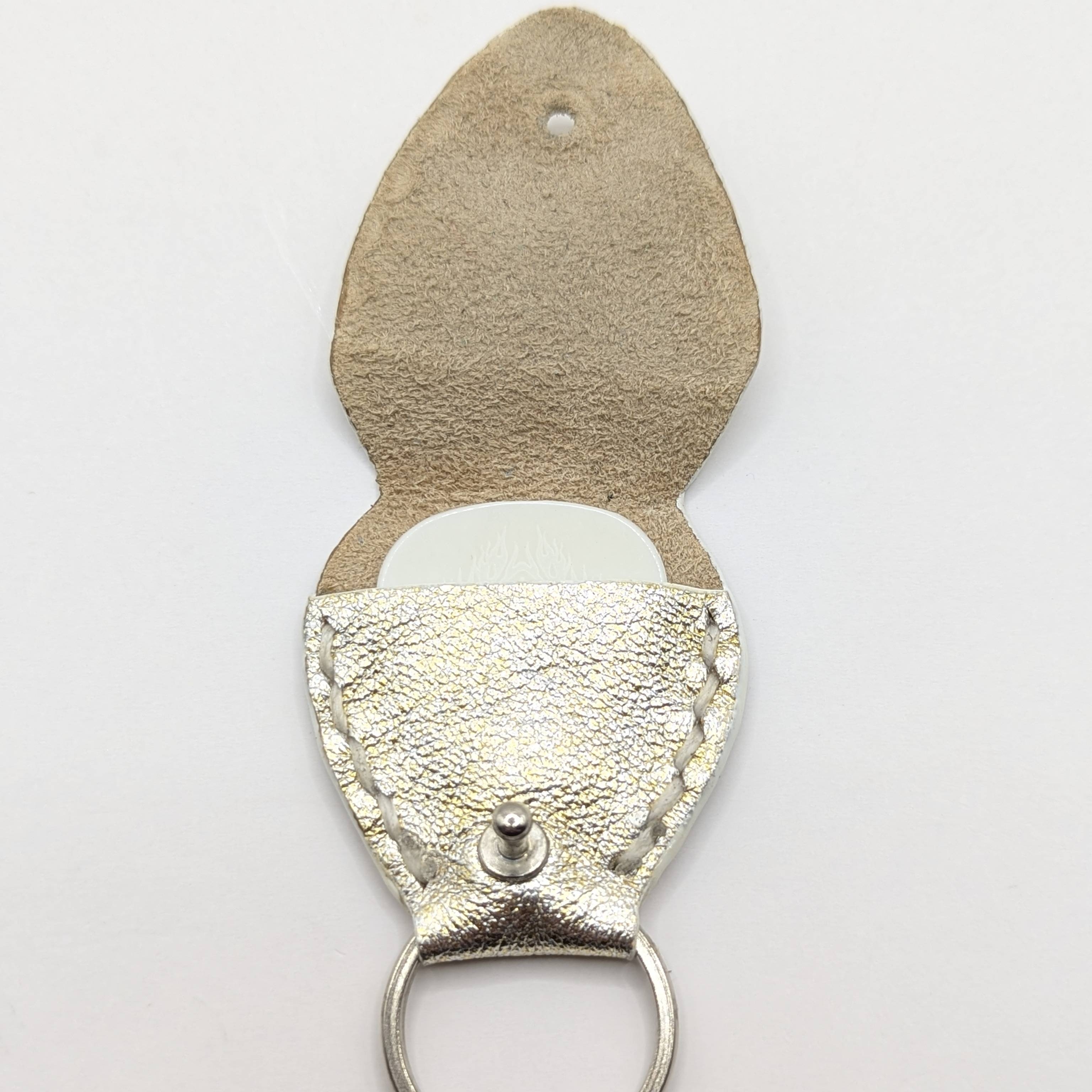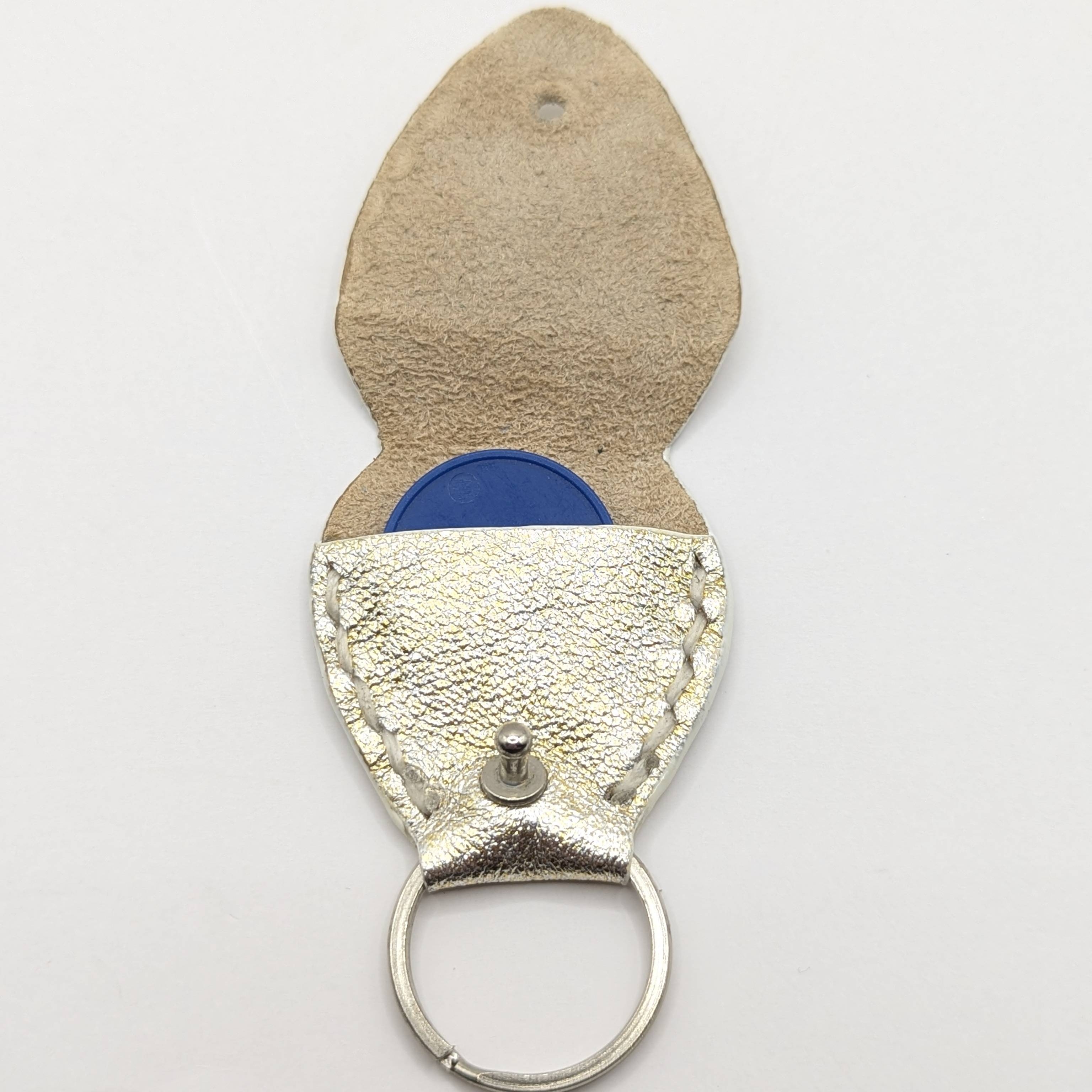 Cet étui sera idéal pour y ranger votre médiator préféré et l’avoir à porté de main grâce à son anneau qui vous permettra de l’accrocher autant à vos clés qu’à votre passant de pantalon. Vous pourrez très bien l’utiliser pour y glisser également votre jeton de caddie et ainsi en avoir toujours un avec vous.