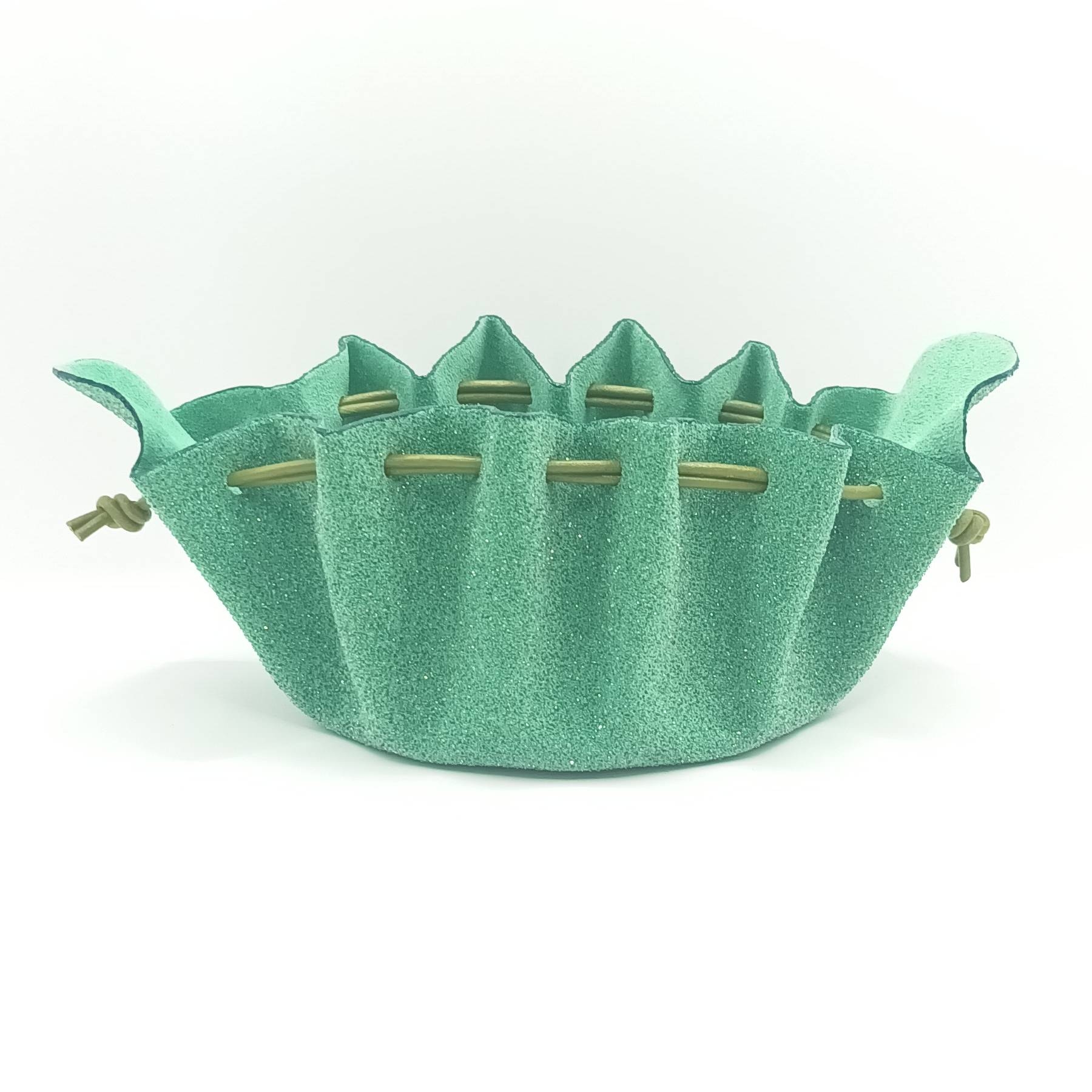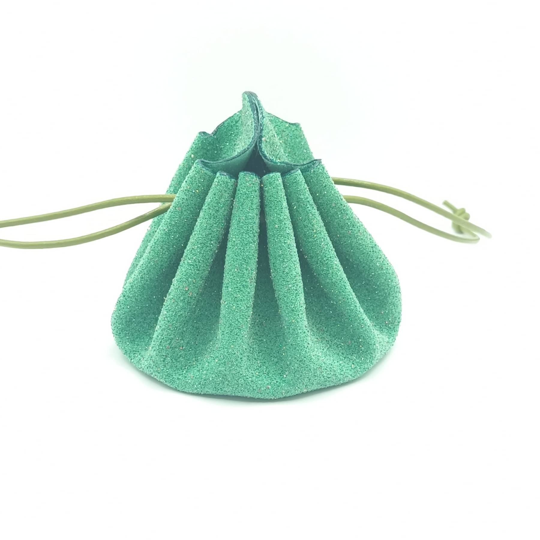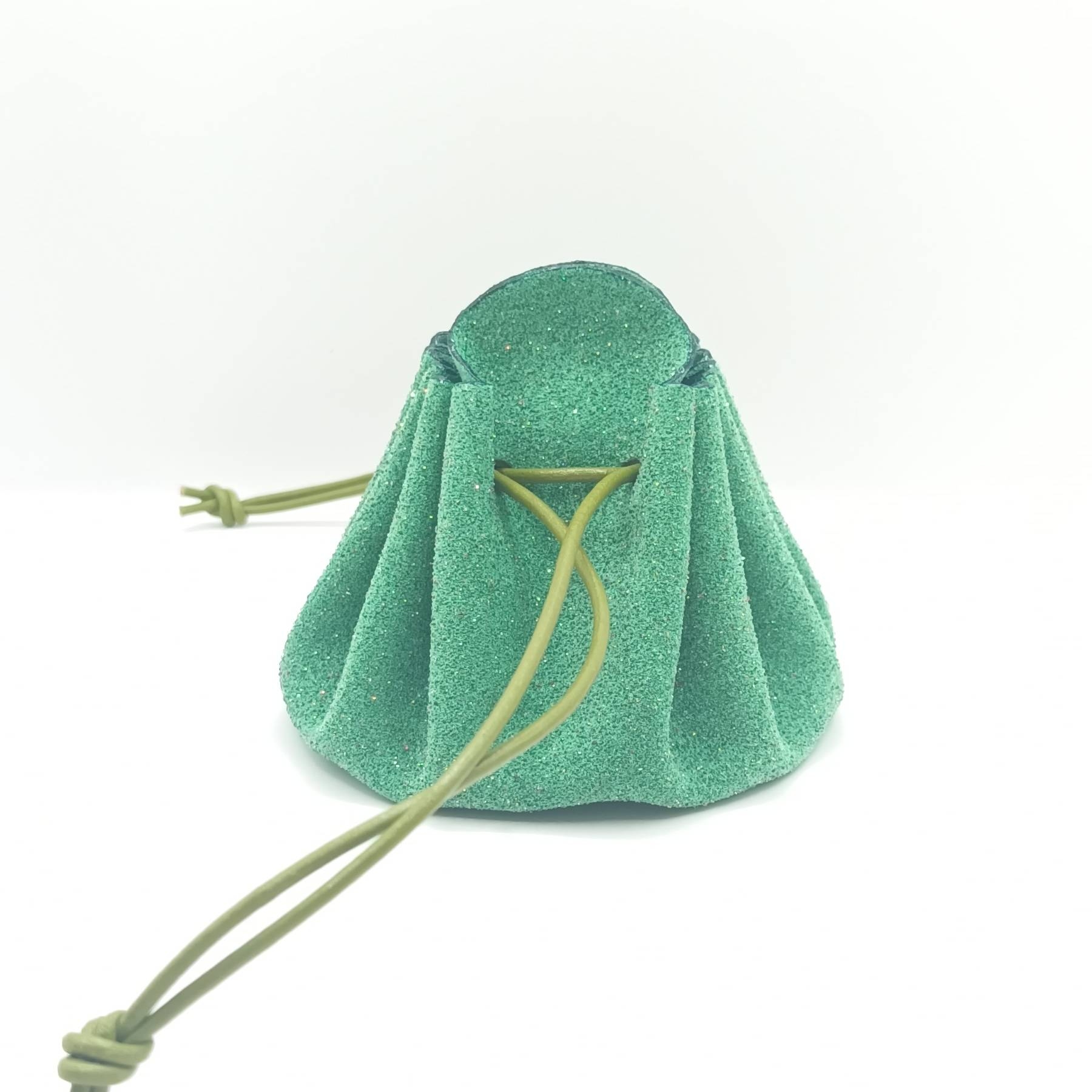 Cette bourse est entièrement réalisée à la main et fabriquée à partir de chutes de cuir d'agneau et le cordon est en cuir de vachette. Elle mesure 8 cm de diamètre et 8 cm de hauteur. Elle s’ouvre simplement en tirant sur les «oreilles» et se ferme en tirant sur les liens. Vous pouvez aussi fermer la bourse en faisant un nœud avec les liens par dessus les «oreilles» pour plus de sécurité. *La couleur réelle peut légèrement varier selon la luminosité et le contraste de votre écran