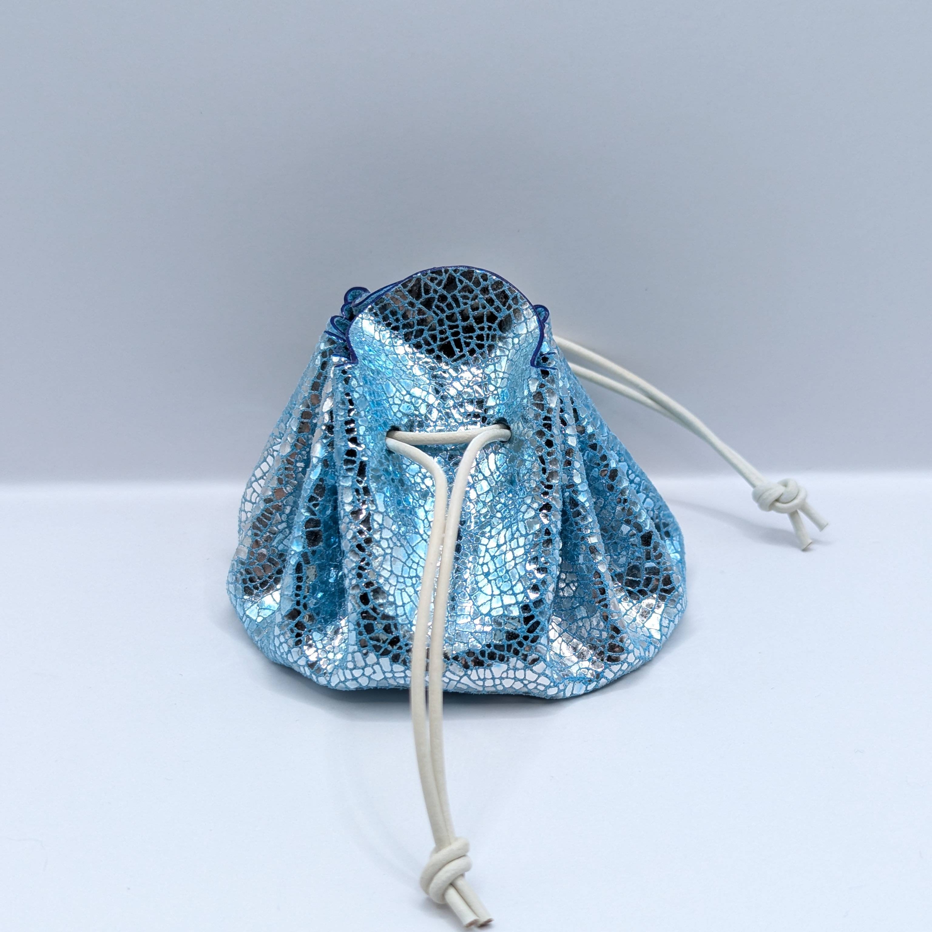 Grande bourse Bleu turquoise et argent Effet craquelé