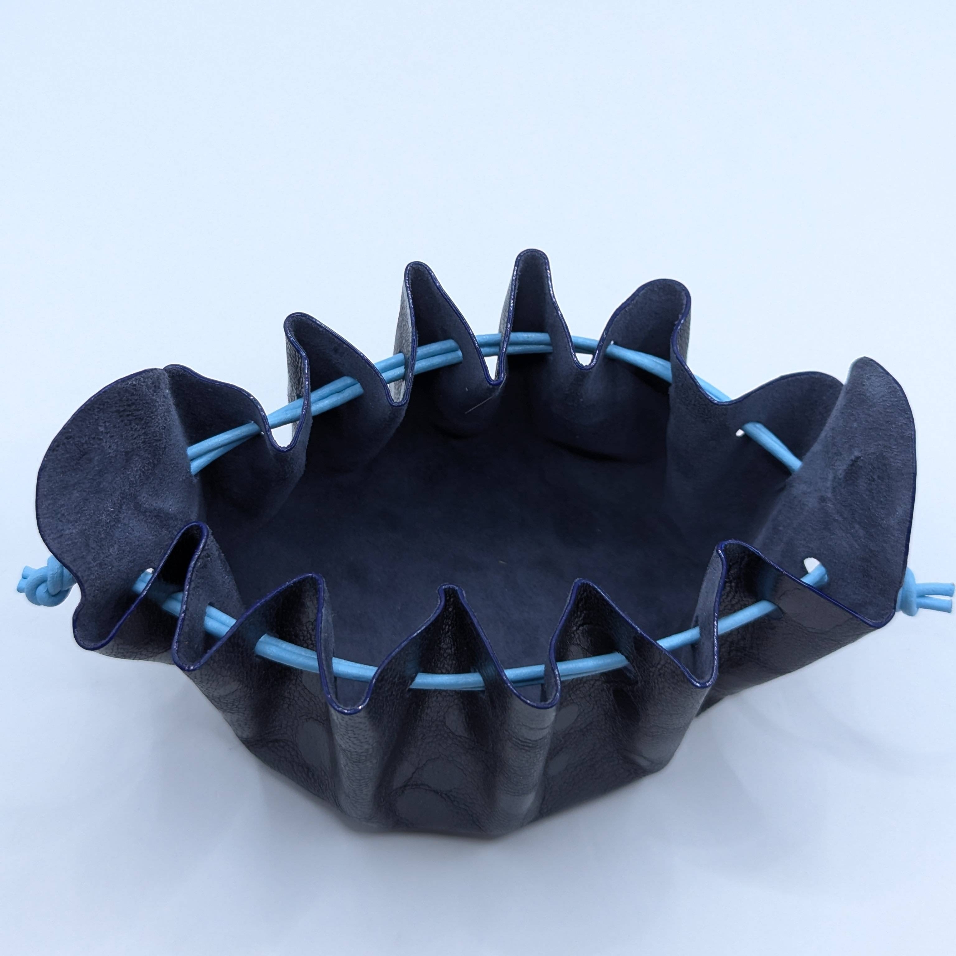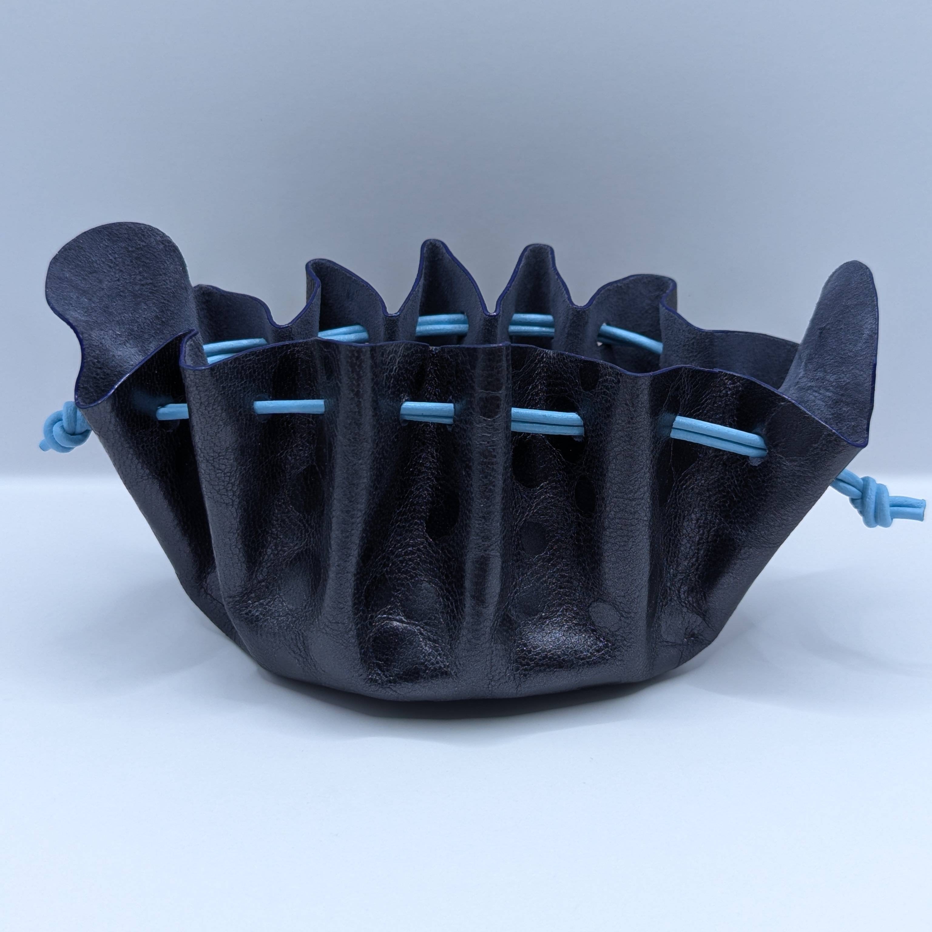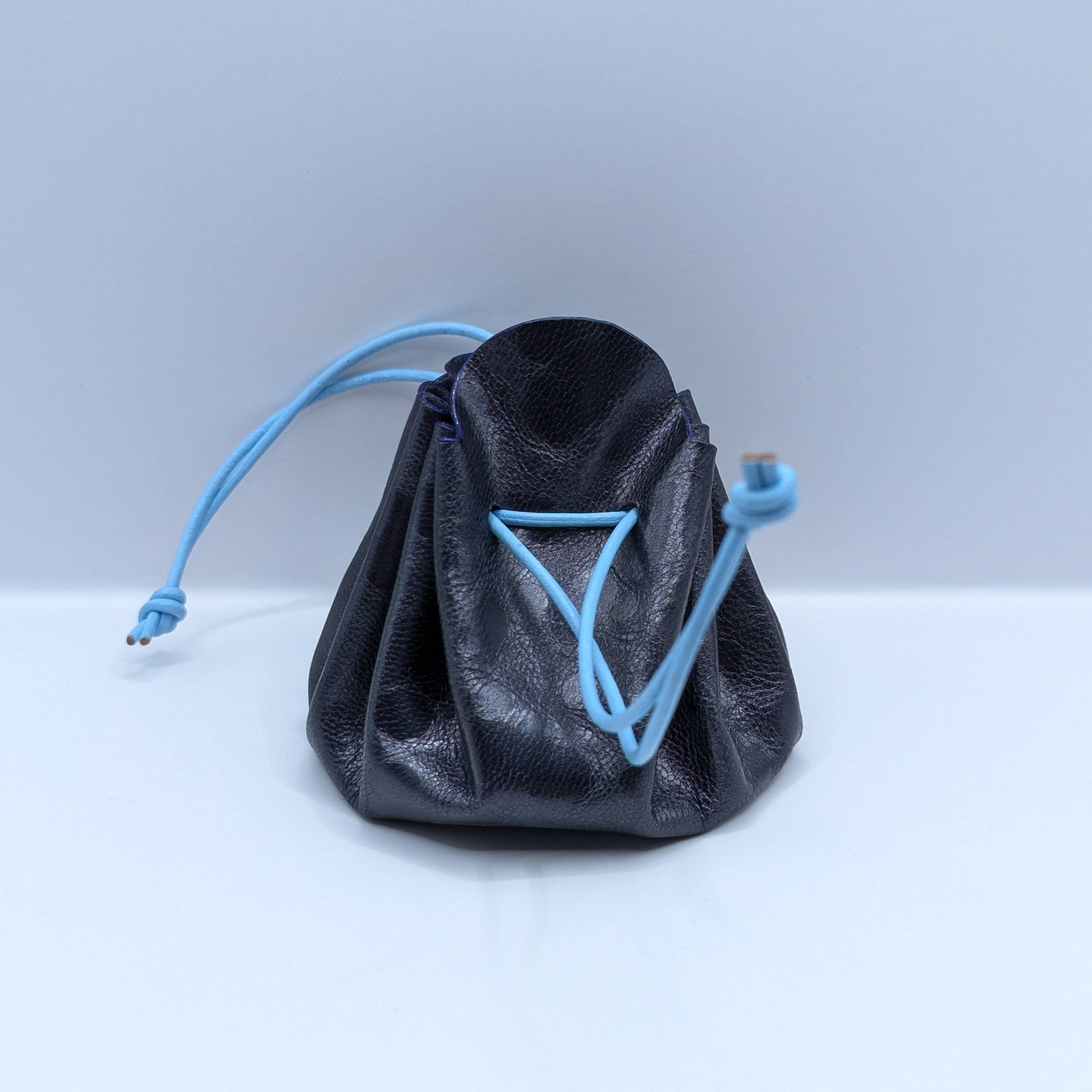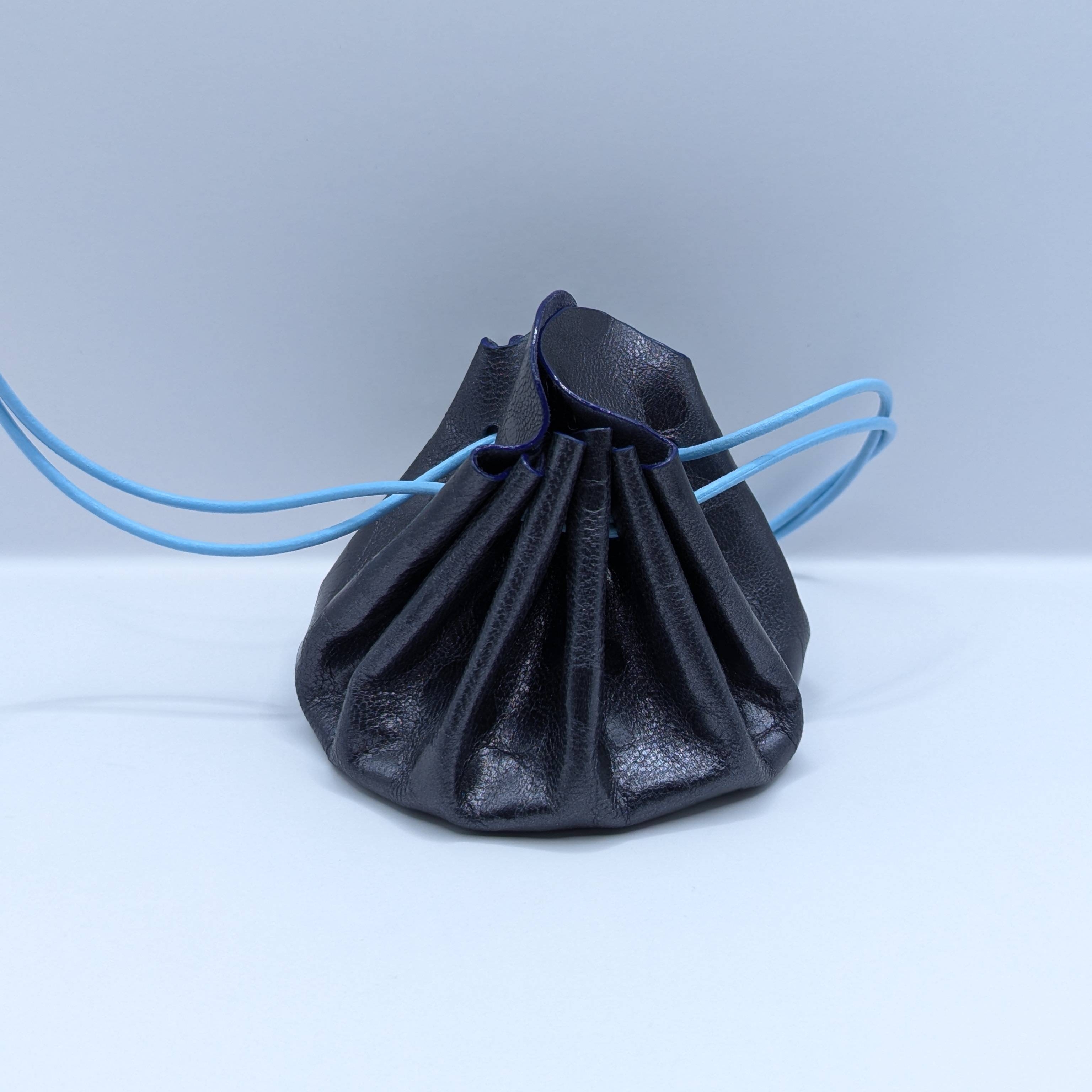 Cette bourse est entièrement réalisée à la main et fabriquée à partir de chutes de cuir d'agneau et le cordon est en cuir de vachette. Elle mesure 8 cm de diamètre et 8 cm de hauteur. Elle s’ouvre simplement en tirant sur les «oreilles» et se ferme en tirant sur les liens. Vous pouvez aussi fermer la bourse en faisant un nœud avec les liens par dessus les «oreilles» pour plus de sécurité. *La couleur réelle peut légèrement varier selon la luminosité et le contraste de votre écran
