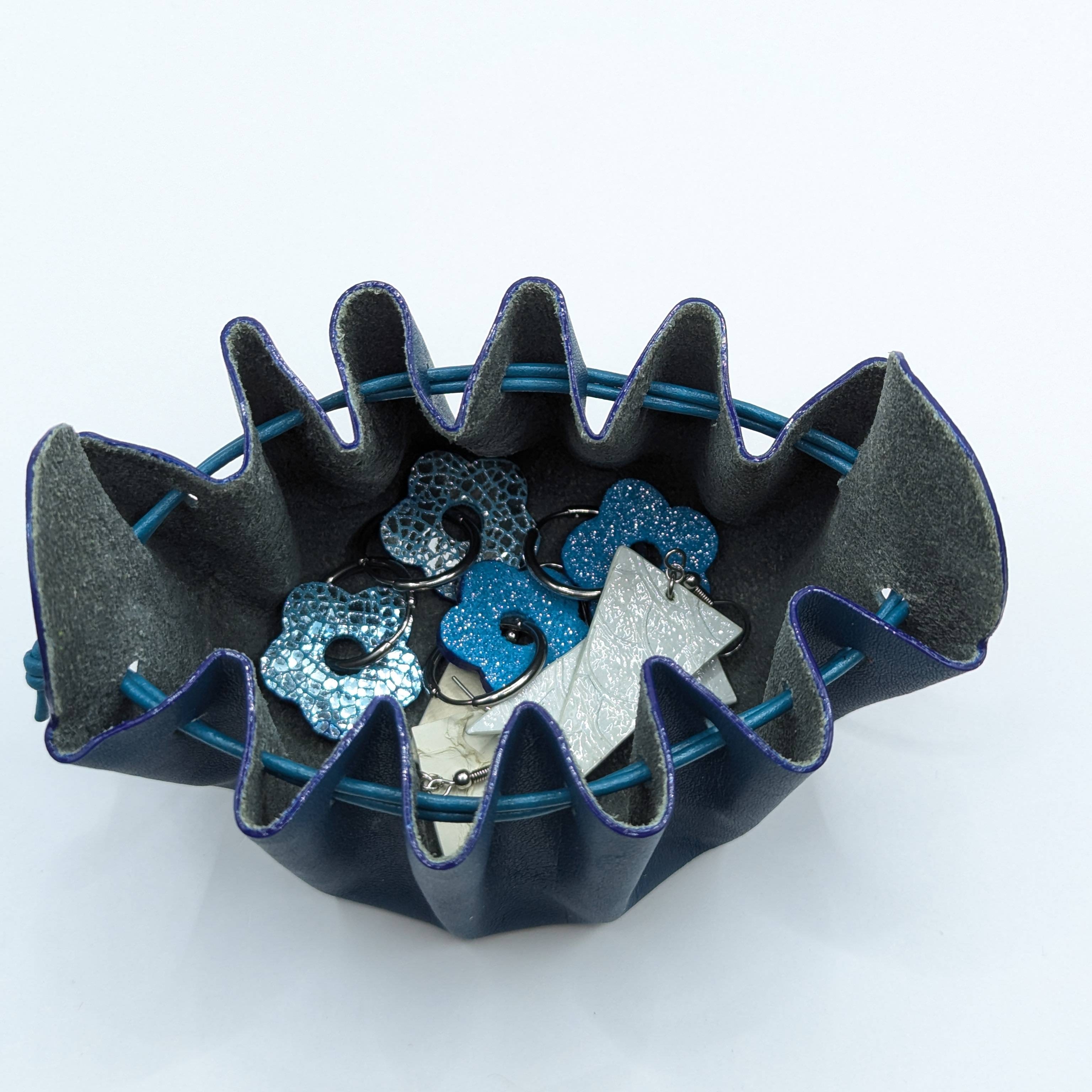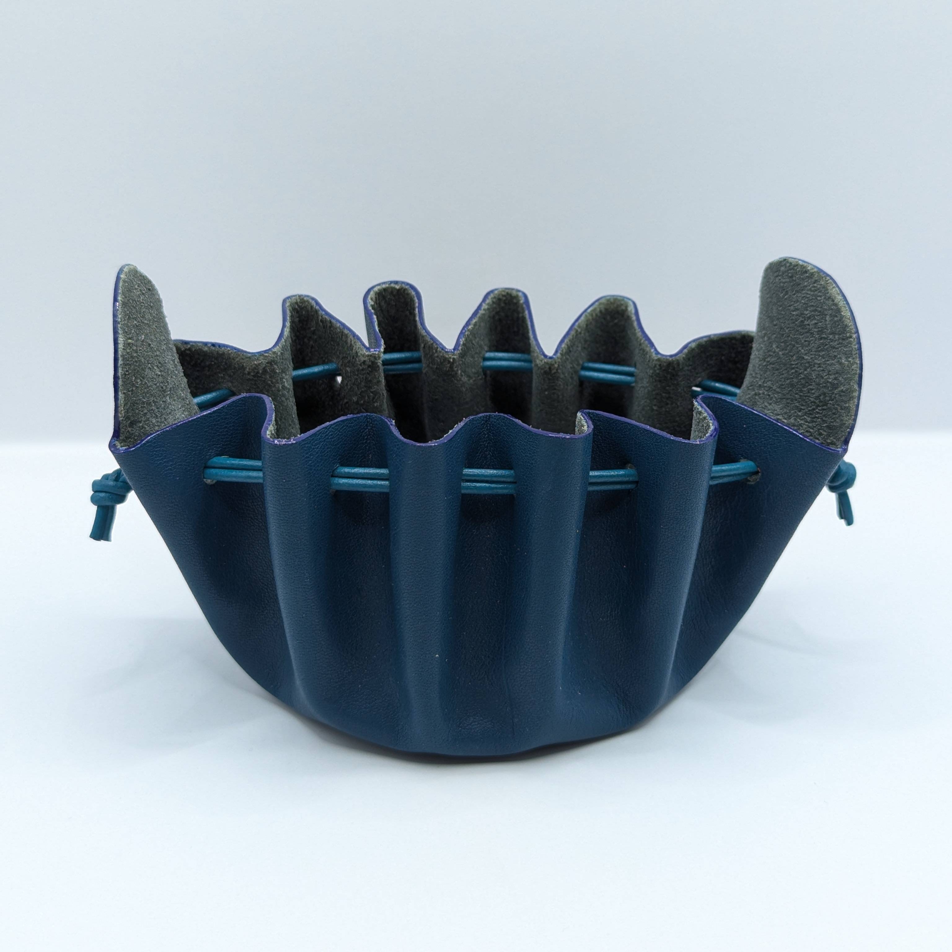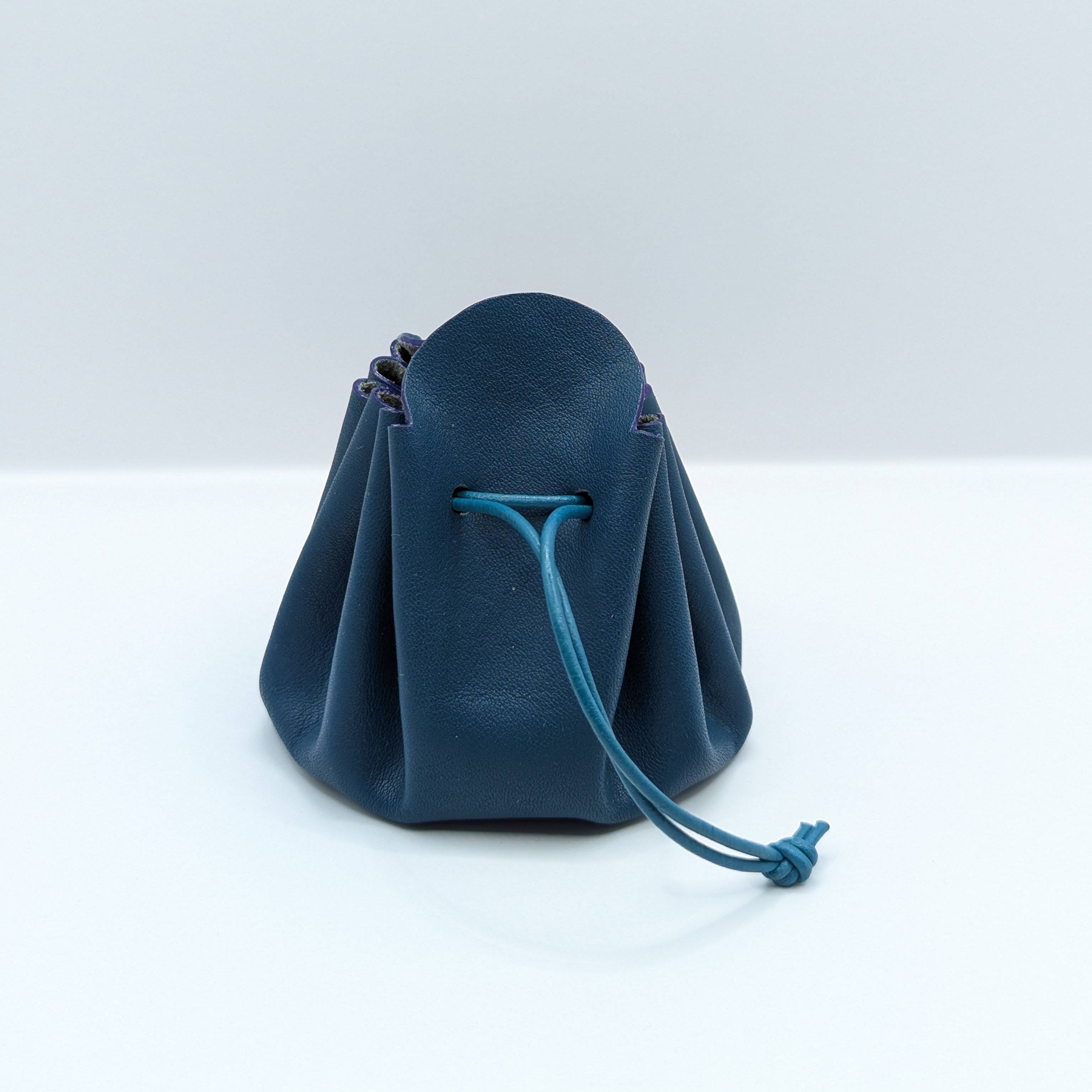 Cette bourse est entièrement réalisée à la main et fabriquée à partir de chutes de cuir de veau et le cordon est en cuir de vachette. Elle mesure 8 cm de diamètre et 8 cm de hauteur. Elle s’ouvre simplement en tirant sur les «oreilles» et se ferme en tirant sur les liens. Vous pouvez aussi fermer la bourse en faisant un nœud avec les liens par dessus les «oreilles» pour plus de sécurité. *La couleur réelle peut légèrement varier selon la luminosité et le contraste de votre écran