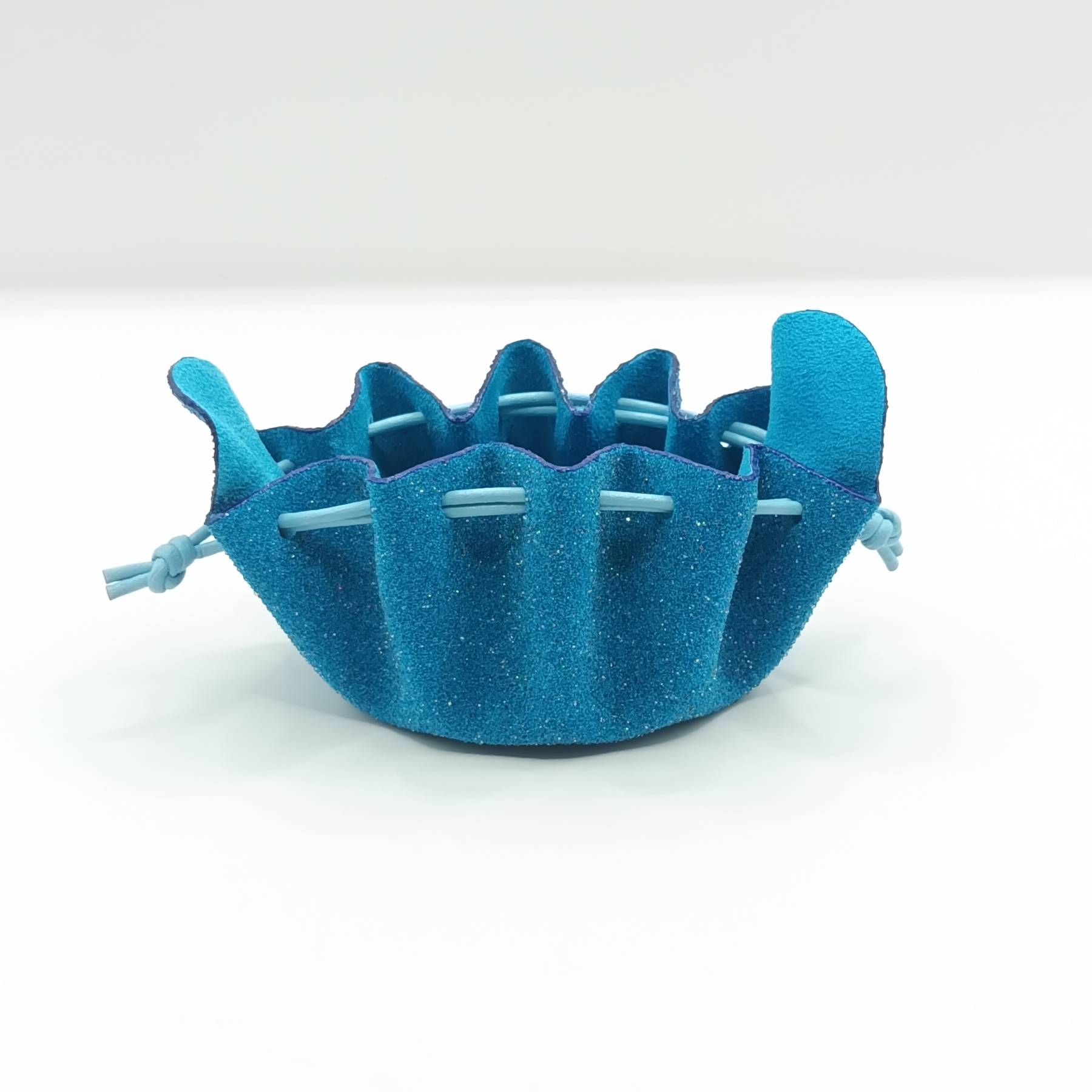 Cette bourse est entièrement réalisée à la main et fabriquée à partir de chutes de cuir de veau et le cordon est en cuir de vachette. Elle mesure 6 cm de diamètre et 6 cm de hauteur. Elle s’ouvre simplement en tirant sur les «oreilles» et se ferme en tirant sur les liens. Vous pouvez aussi fermer la bourse en faisant un nœud avec les liens par dessus les «oreilles» pour plus de sécurité. *La couleur réelle peut légèrement varier selon la luminosité et le contraste de votre écran