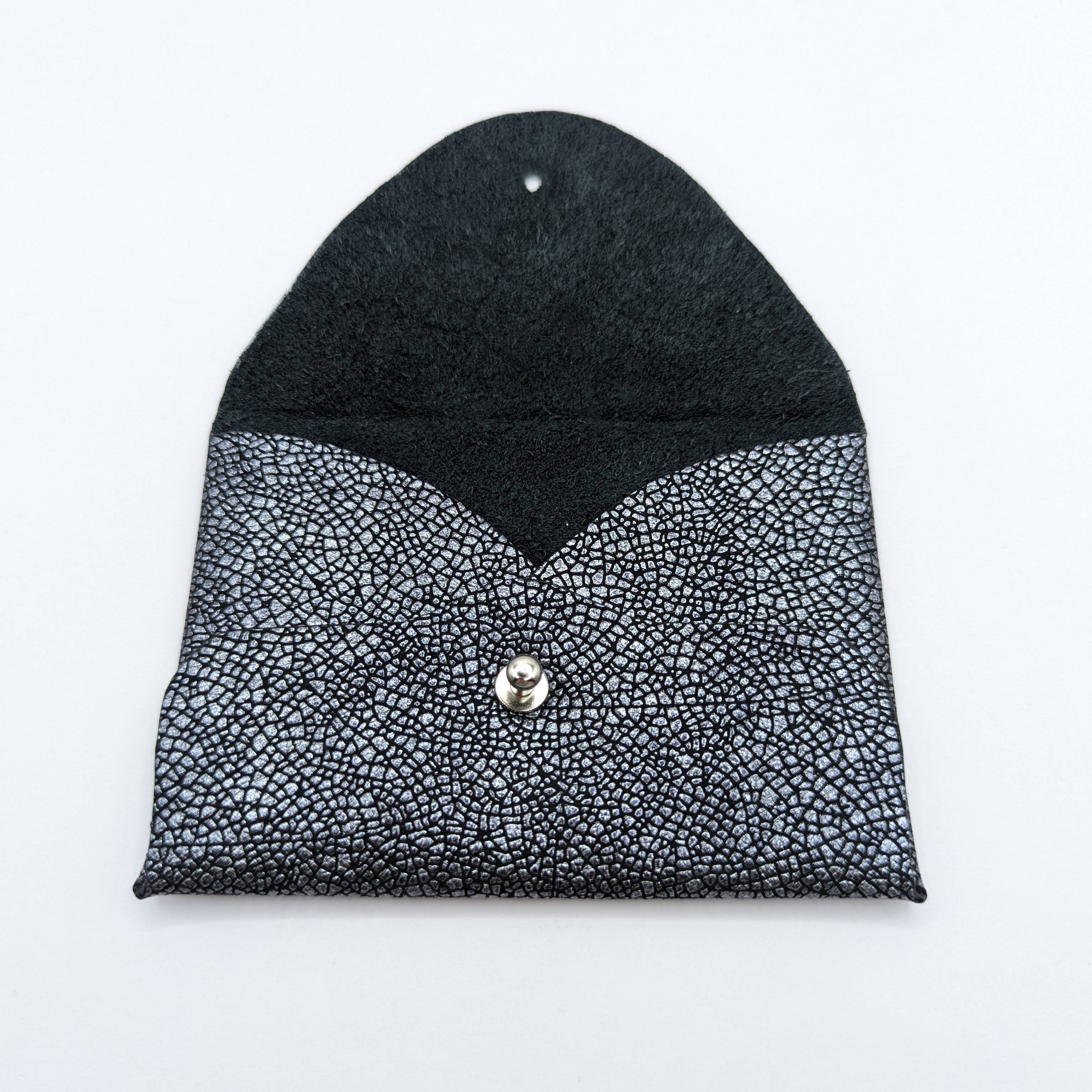 Ce porte-cartes en cuir de veau, raffiné et minimaliste, est idéal pour transporter vos indispensables avec élégance. Sa conception en cuir véritable violet pailleté lui assure une grande durabilité tout en offrant une texture agréable au toucher. Pratique, il dispose d’un compartiment permettant de glisser vos cartes bancaires, cartes de visite ou papiers essentiels sans encombre. Son format compact se glisse aisément dans une poche ou un sac, tout en protégeant vos cartes des pliures et de l’usure. Un accessoire élégant et fonctionnel, pensé pour un usage quotidien et adapté à ceux qui recherchent à la fois sobriété, solidité et style intemporel. *La couleur réelle peut légèrement varier selon la luminosité et le contraste de votre écran