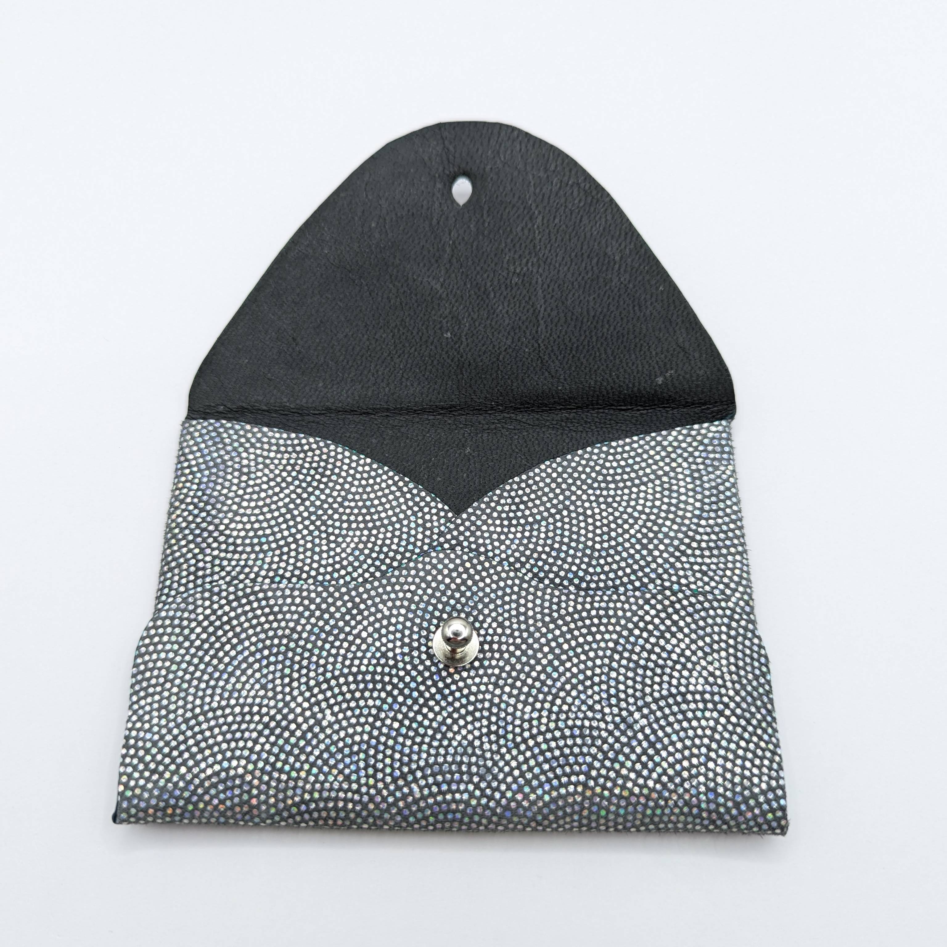 Ce porte-cartes en cuir de veau, raffiné et minimaliste, est idéal pour transporter vos indispensables avec élégance. Sa conception en cuir véritable violet pailleté lui assure une grande durabilité tout en offrant une texture agréable au toucher. Pratique, il dispose d’un compartiment permettant de glisser vos cartes bancaires, cartes de visite ou papiers essentiels sans encombre. Son format compact se glisse aisément dans une poche ou un sac, tout en protégeant vos cartes des pliures et de l’usure. Un accessoire élégant et fonctionnel, pensé pour un usage quotidien et adapté à ceux qui recherchent à la fois sobriété, solidité et style intemporel. *La couleur réelle peut légèrement varier selon la luminosité et le contraste de votre écran
