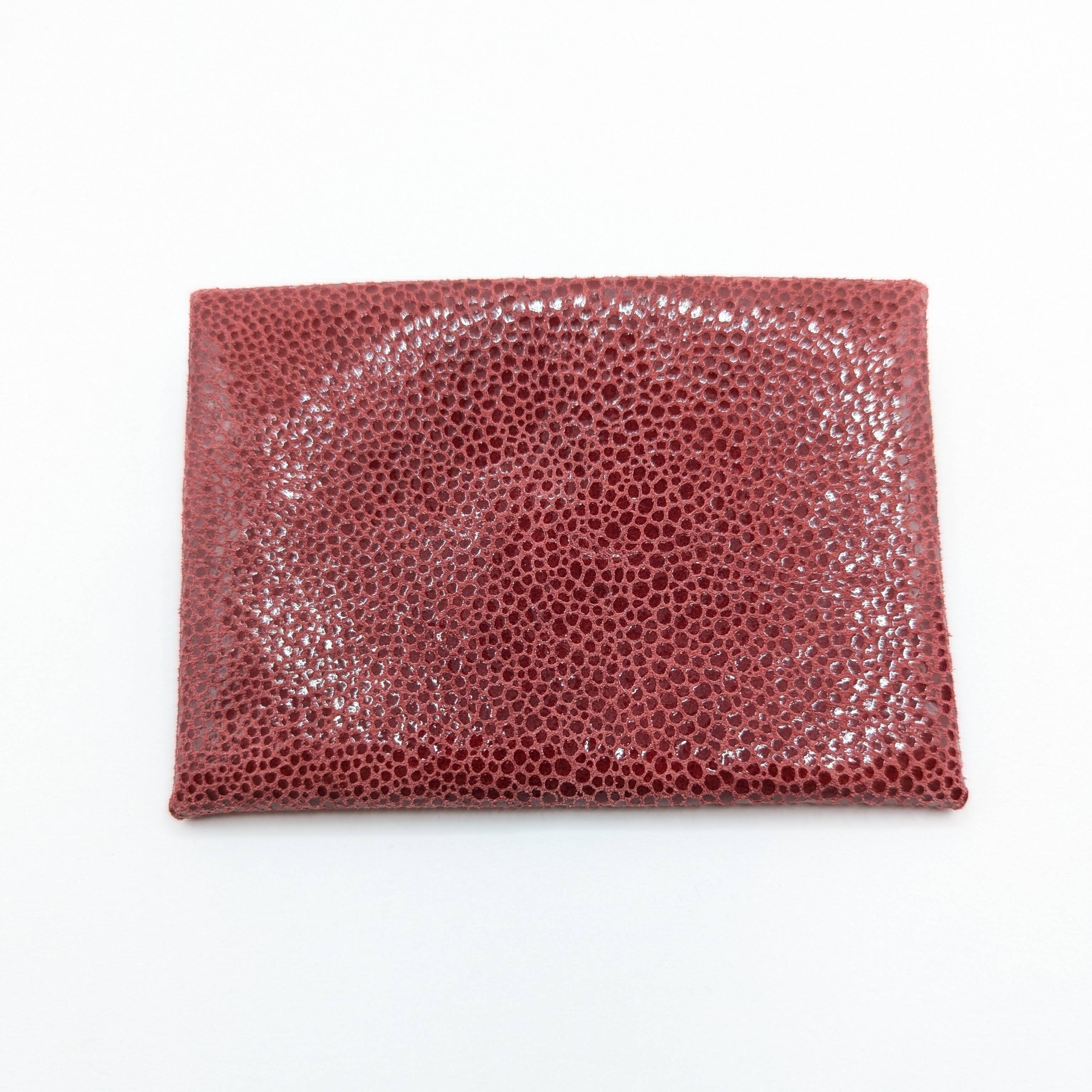 Ce porte-cartes en cuir de veau, raffiné et minimaliste, est idéal pour transporter vos indispensables avec élégance. Sa conception en cuir véritable violet pailleté lui assure une grande durabilité tout en offrant une texture agréable au toucher. Pratique, il dispose d’un compartiment permettant de glisser vos cartes bancaires, cartes de visite ou papiers essentiels sans encombre. Son format compact se glisse aisément dans une poche ou un sac, tout en protégeant vos cartes des pliures et de l’usure. Un accessoire élégant et fonctionnel, pensé pour un usage quotidien et adapté à ceux qui recherchent à la fois sobriété, solidité et style intemporel. *La couleur réelle peut légèrement varier selon la luminosité et le contraste de votre écran