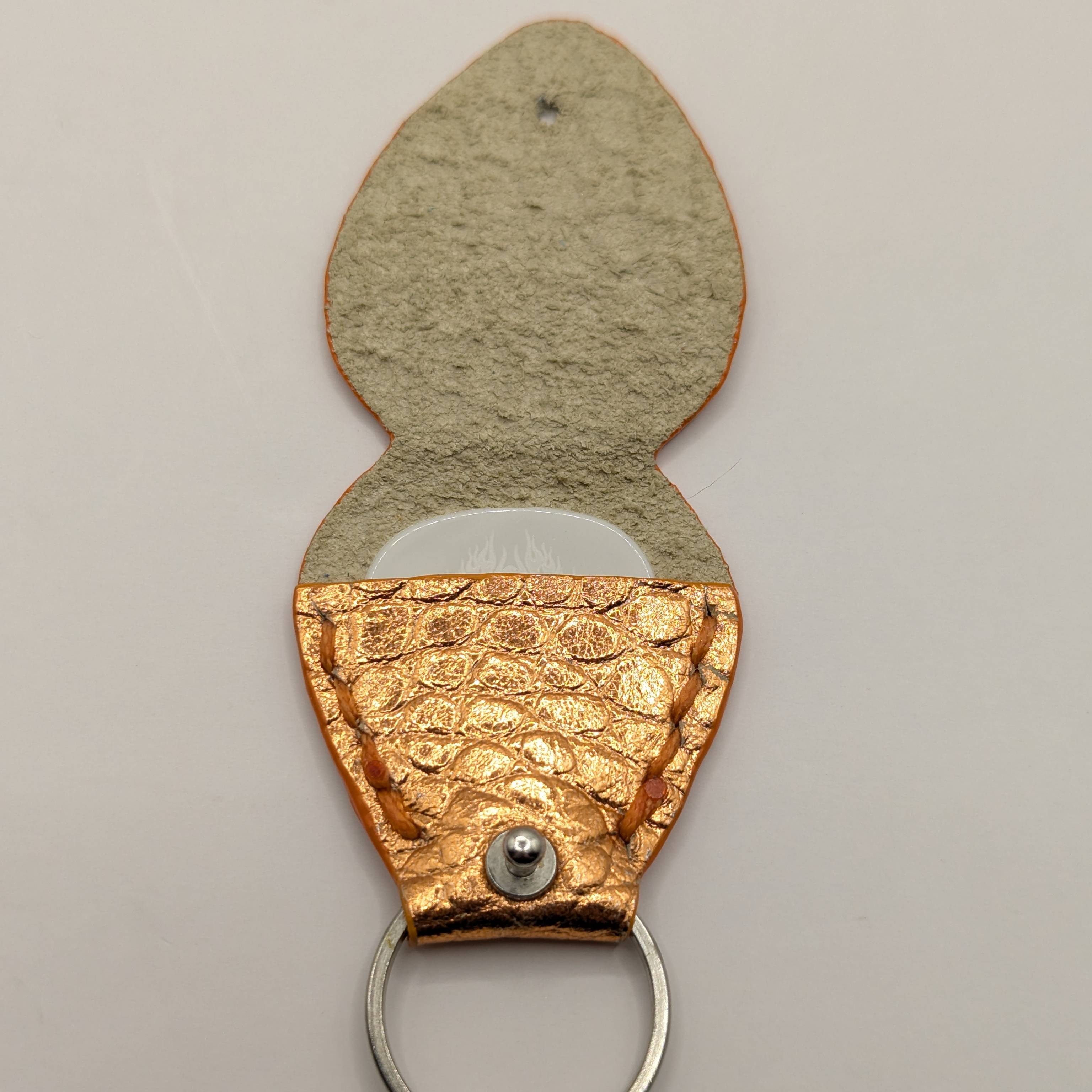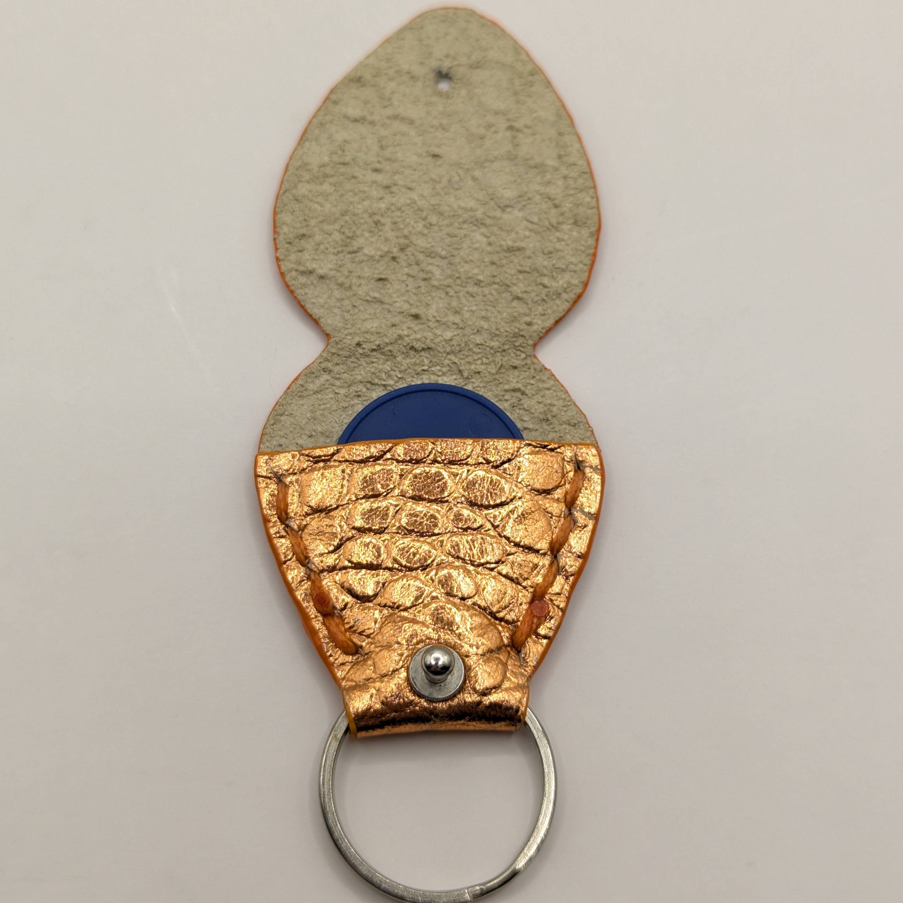 Cet étui sera idéal pour y ranger votre médiator préféré et l’avoir à porté de main grâce à son anneau qui vous permettra de l’accrocher autant à vos clés qu’à votre passant de pantalon. Vous pourrez très bien l’utiliser pour y glisser également votre jeton de caddie et ainsi en avoir toujours un avec vous.