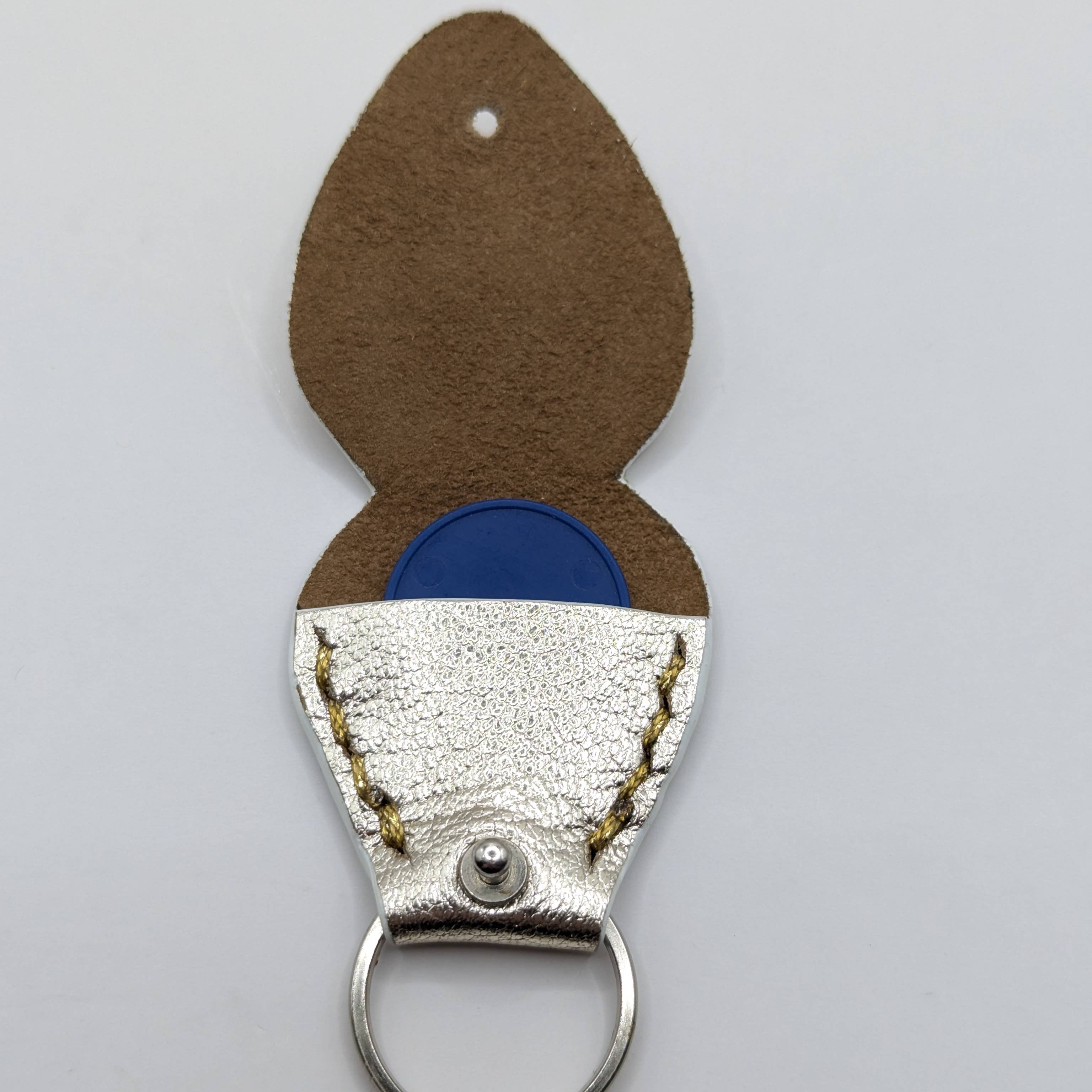 Cet étui sera idéal pour y ranger votre médiator préféré et l’avoir à porté de main grâce à son anneau qui vous permettra de l’accrocher autant à vos clés qu’à votre passant de pantalon. Vous pourrez très bien l’utiliser pour y glisser également votre jeton de caddie et ainsi en avoir toujours un avec vous.