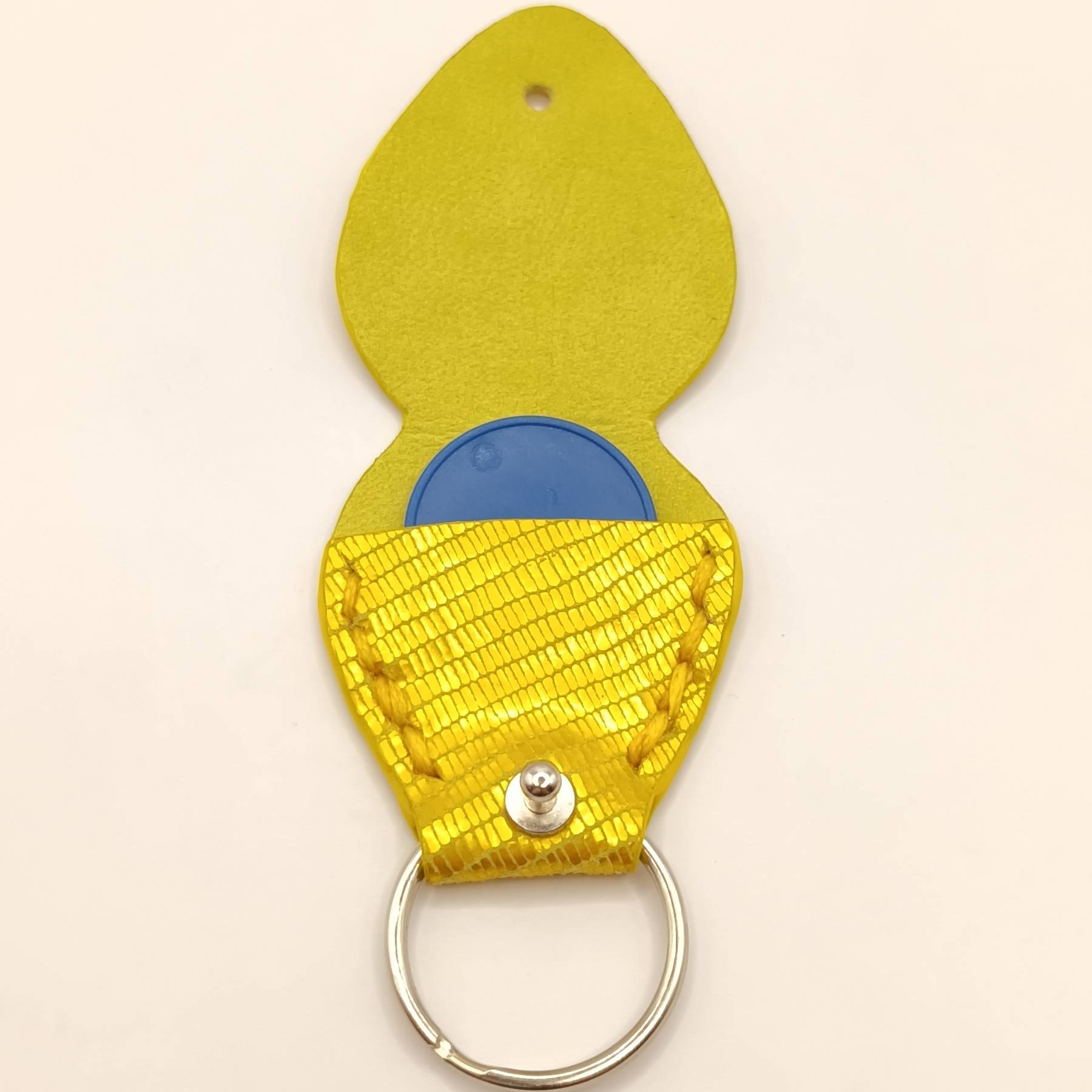 Cet étui sera idéal pour y ranger votre médiator préféré et l’avoir à porté de main grâce à son anneau qui vous permettra de l’accrocher autant à vos clés qu’à votre passant de pantalon. Vous pourrez très bien l’utiliser pour y glisser également votre jeton de caddie et ainsi en avoir toujours un avec vous.